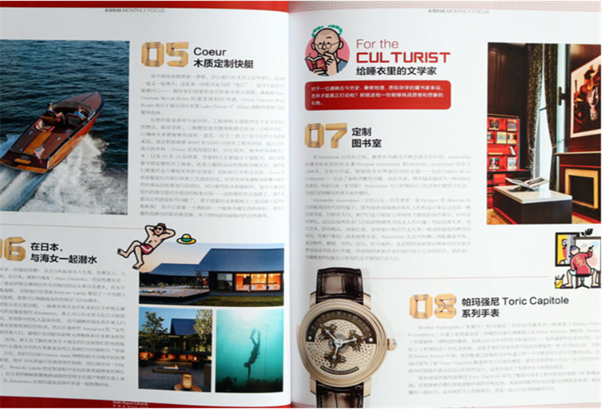它通過迷人和生動的編輯內容,將世界上最獨特最激動人心的體驗,權威性地介紹給深具品味的讀者。內容涵蓋了極具品味的生活方式:汽車、游艇、飛機、房產、風格、文化、旅游以及享受人生的體驗,吸引讀者進入一個冒險和卓越的世界。